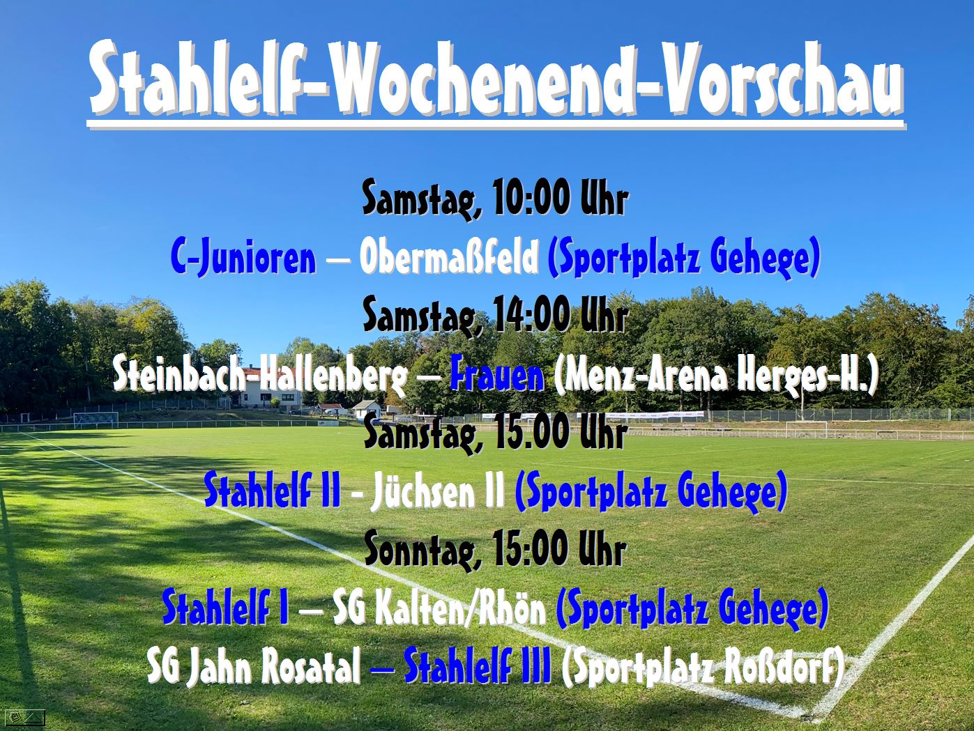 Unsere beiden Reservemannschaften warten weiter auf den ersten Punktgewinn der Saison, sie haben am Wochenende die Gelegenheit dazu, erstmals zu punkten. Leicht wird dieses Unterfangen aber sicherlich nicht werden. Bereits am Samstag empfängt unsere Zweite das Team von Jüchsen II im "Gehege", Spielbeginn ist um 15.00 Uhr. Unsere Dritte spielt am Sonntag um 15.00 Uhr dann in Roßdorf bei der SG Jahn Rosatal.