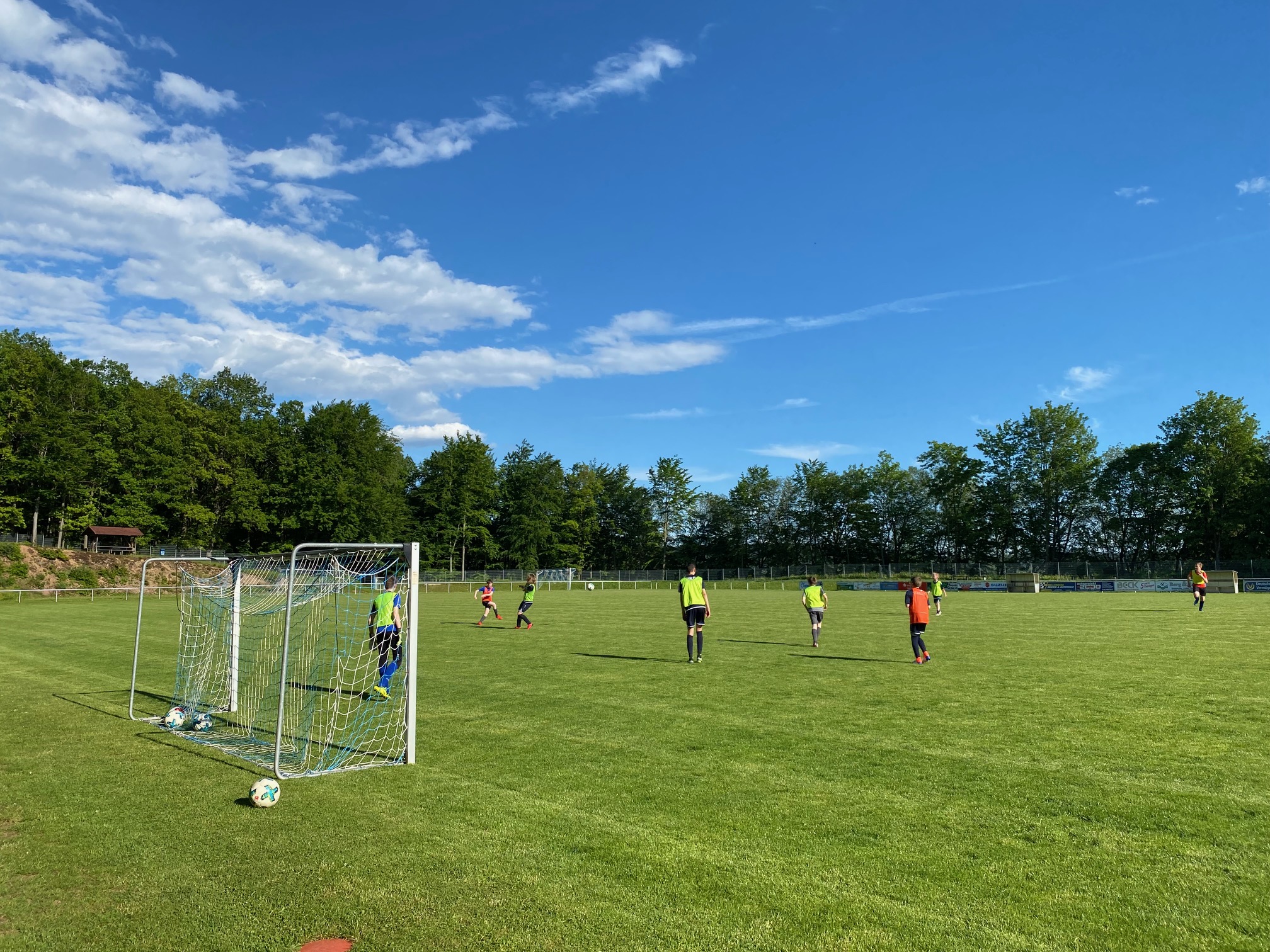 Sichtbar begeistert waren alle 14 Nachwuchs-Kicker beim C-Junioren-Training am Mittwoch, da sie bei "Kaiserwetter" endlich auch wieder in Spielform trainieren durften. Die Alterklassen U14 durften ja bereits 4 Wochen "Kleingruppen-Training" durchführen, doch nun dürfen alle Fußballer in allen Altersklassen wieder ihrem geliebten Hobby nachgehen.