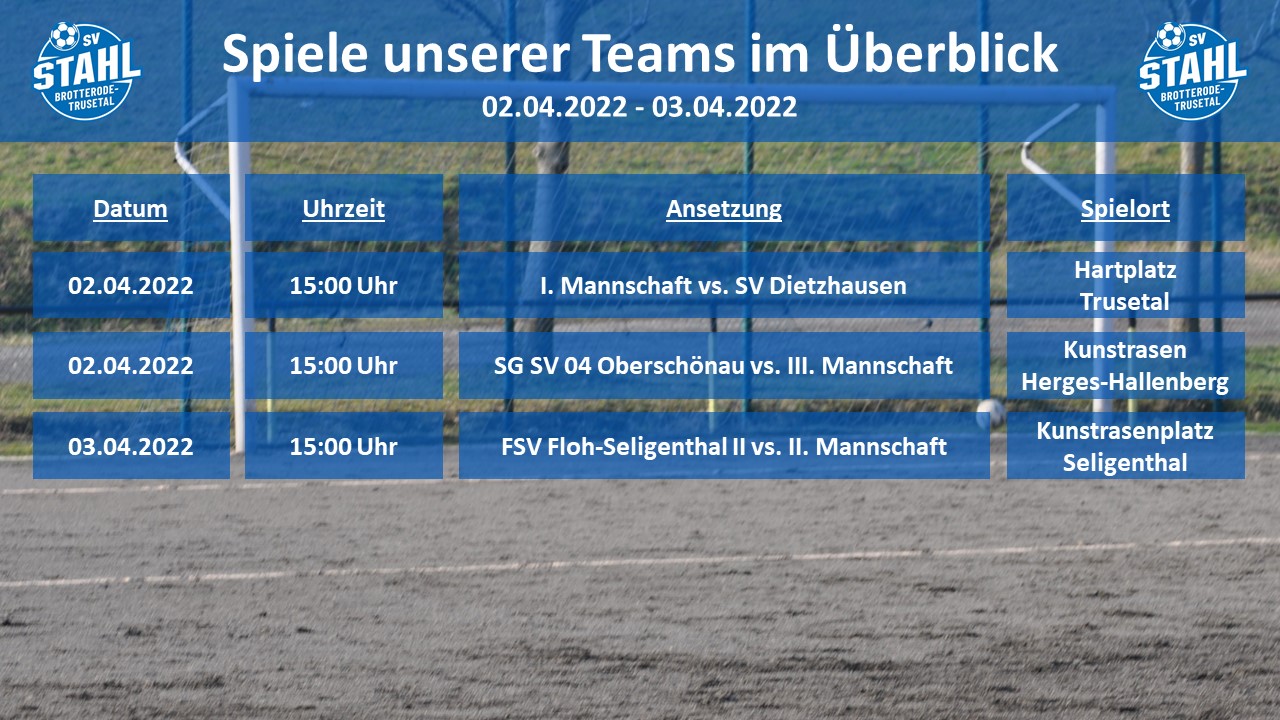 - HEIMSPIEL DER ERSTEN AM SAMSTAG AUF DEM HARTPLATZ IN TRUSETAL !!! SPIEL FINDET STATT, ANPFIFF 15.00 UHR !!!