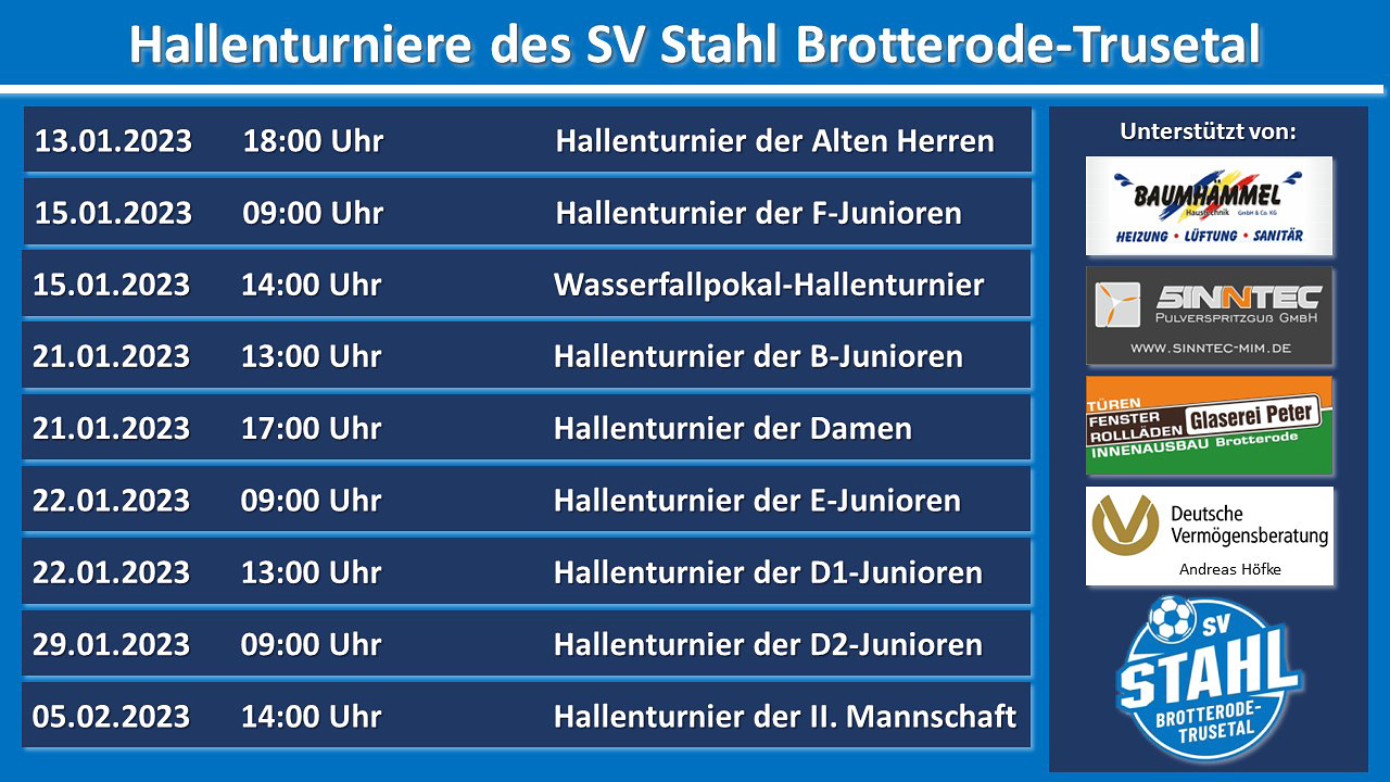 Hier die Übersicht über unsere Hallenturniere: