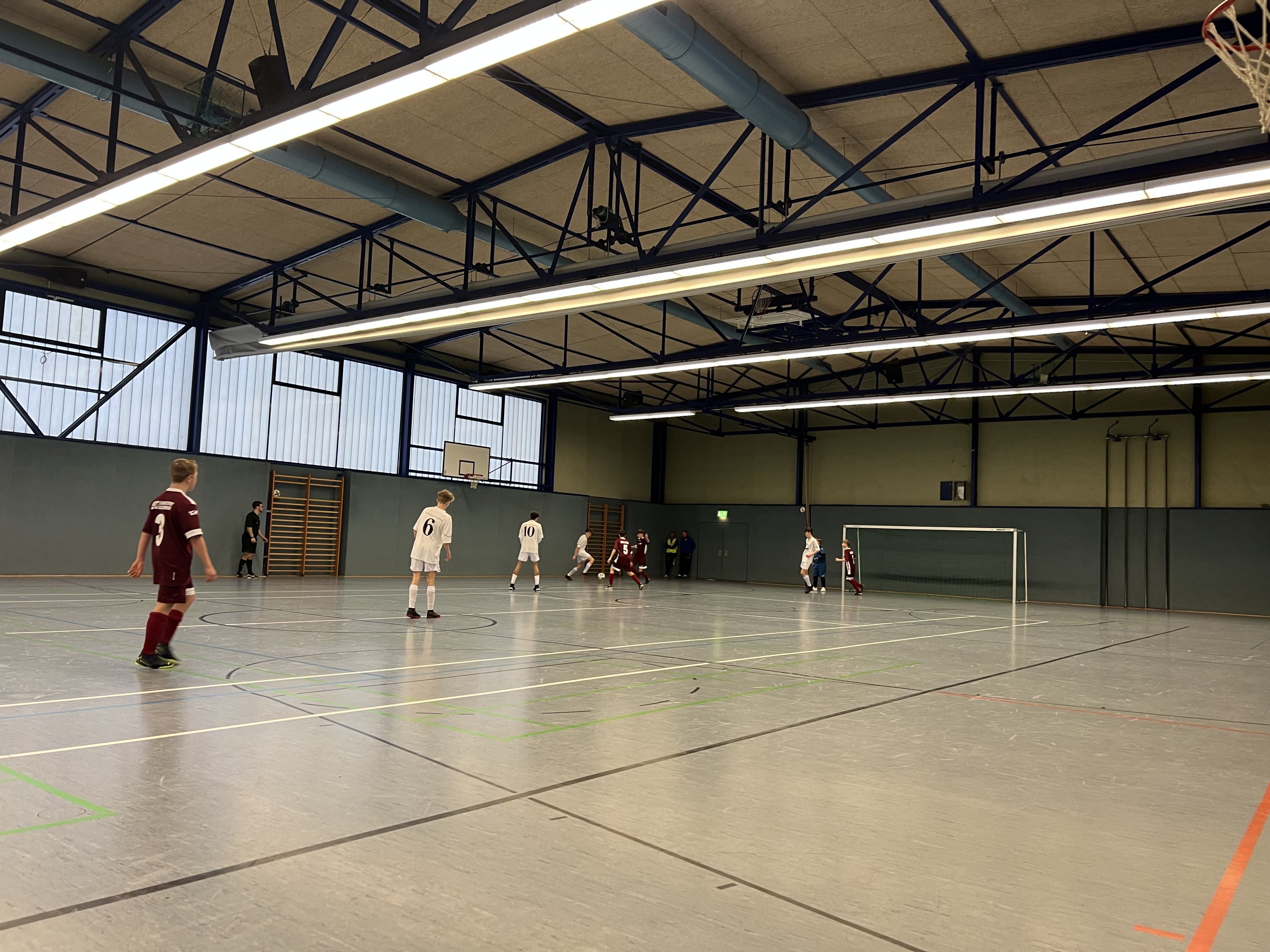Nachdem sich alle am Sonntagmorgen durch die inzwischen gefallenen Schneemassen gekämpft hatten, ging es auf dem Trusetaler Hallenparkett weiter mit dem Turnier der E-Junioren. Hier waren wieder 8 Mannschaften am Start. Wie gehabt ging es in den zwei Vorrunden-Gruppen um die Qualifikation für das Halbfinale. In Gruppe A gab es das Kuriosum, dass alle Mannschaften ein ausgeglichenes Torverhältnis hatten. Platz 1 sicherte sich das Team vom FC 02 Barchfeld. Der zweite Halbfinale-Platz ging aufgrund der mehr geschossenen Tore an Rot-Weiß Breitungen. Somit mussten sich Stahlelf Team A mit Platz 3 und die SG Maßfeld mit Platz 4 begnügen. In der zweiten Vorrundengruppe waren die Halbfinal-Plätze deutlich an Reinhardsbrunn und Stahlelf Team B, auf den Plätzen landete Mittelschmalkalden und Fambach.