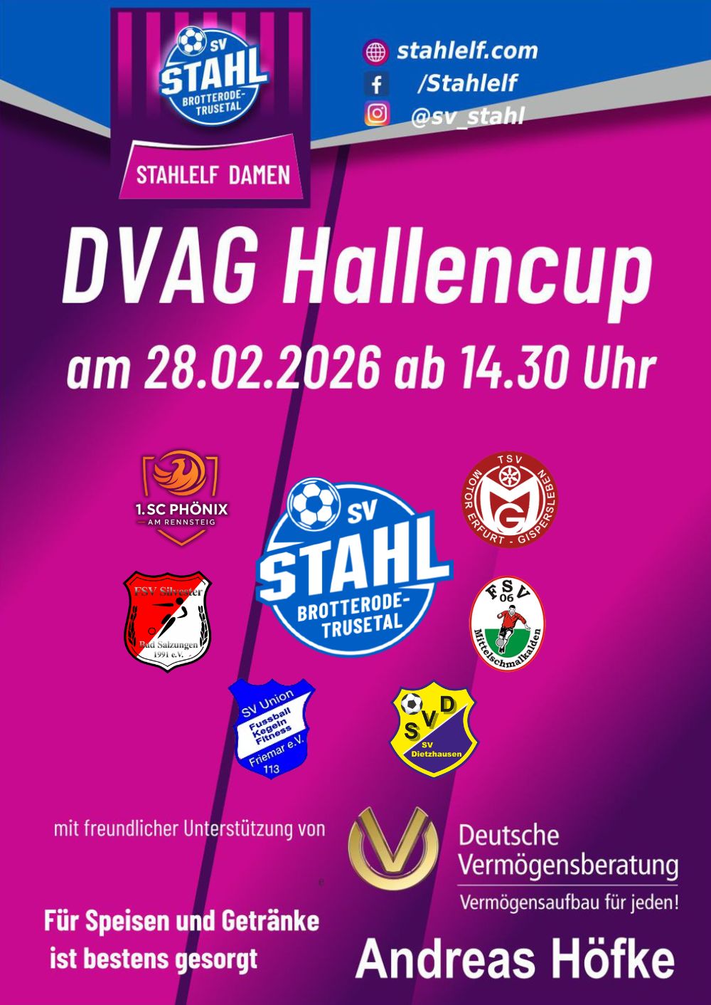 Alle Jahre wieder steigt in der Sporthalle Trusetal der jährliche Budenzauber. Auch in diesem neuen Jahr 2026 wartet der SV Stahl mit Turnieren in allen Altersklassen auf. Hier die Übersicht über alle Turniere, wir freuen uns auf Euren Besuch! Für die Verpflegung und gute Unterhaltung wird wie immer bestens gesorgt sein.