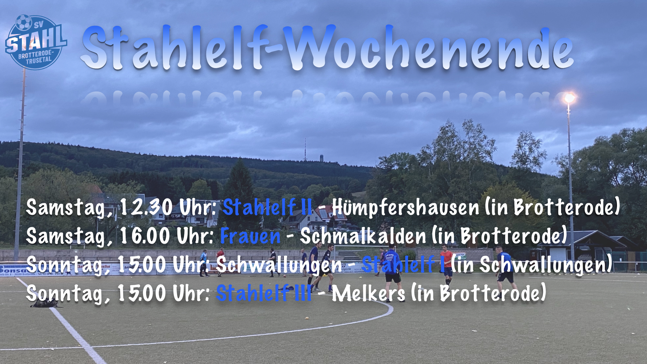 Am kommenden Wochenende stehen für die Teams der Stahlelf drei Heimspiele und ein Auswärtsspiel auf dem Programm. Die drei Heimspiele finden allesamt auf dem Kunstrasen im Inselbergstadion Brotterode statt.