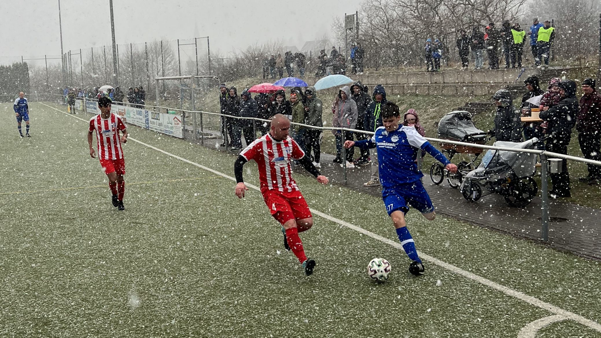 Auf dem Kunstrasen im Brotteroder Inselbergstadion hatten die Hausherren bereits nach drei Minuten die Riesenchance zur Führung. Nach einer Hereingabe von Schröder, der sich auf der rechten Seite durchsetzte, war Angreifer Peter völlig frei vor Gästekeeper Vogel, der den Ball zur Ecke abwehrte. Bevor Mitte der ersten Hälfte der erste starke Schneeschauer unterhalb des Inselbergs einsetzte, bekamen die Hausherren bereits in der 10.Spielminute die kalte Dusche. Nach einem Eckball von Hegner konnte Juan Rafael Mejia Sierra am Fünfmeterraum völlig unbedrängt zum 0:1 einköpfen. Die Stahlelf tat sich über weite Strecken des Spiels gegen eine robust aufgestellte Floh-Seligenthaler Mannschaft sehr schwer und kam nur zögerlich zu klaren Möglichkeiten. Es fehlte zu oft der nötige Zug zum Tor. In der 16.Minute wurde ein Schuss von Stapf von der Gäste-Abwehr geblockt. Peter versuchte es im Nachsetzen artistisch. Nach einer knappen halben Stunde fasste sich Stapf dann mal ein Herz und zog aus der zweiten Reihe ab. Seinen Schuss konnte Vogel allerdings zur Ecke abwehren. Kurz danach folgte die größte Möglichkeit der Hausherren auf den Ausgleich. Stapft prüfte zunächst erneut den Floh-Seligenthaler Schlussmann, der den Ball noch an die Latte lenkte. Der Abpraller landete bei Peter, der den Ball völlig freistehend verzog und somit die Chance zum 1:1 kläglich vergab (33.Minute). Im Anschluss hatten Brotterode-Trusetals Stapf und Peter zwei weitere gute Gelegenheiten, die aber beide das Gästetor verfehlten (38./40.). Die Gastmannschaft konnte sich nach der frühen Führung auf wenige Kontermöglichkeiten konzentrieren. Im Schneegestöber vor der Pause tauchten die Gäste nur noch einmal gefährlich vor dem gegnerischen Tor auf. Hier konnte Stahl-Keeper Lesser an der Strafraumgrenze mit dem Kopf vor Paul klären.