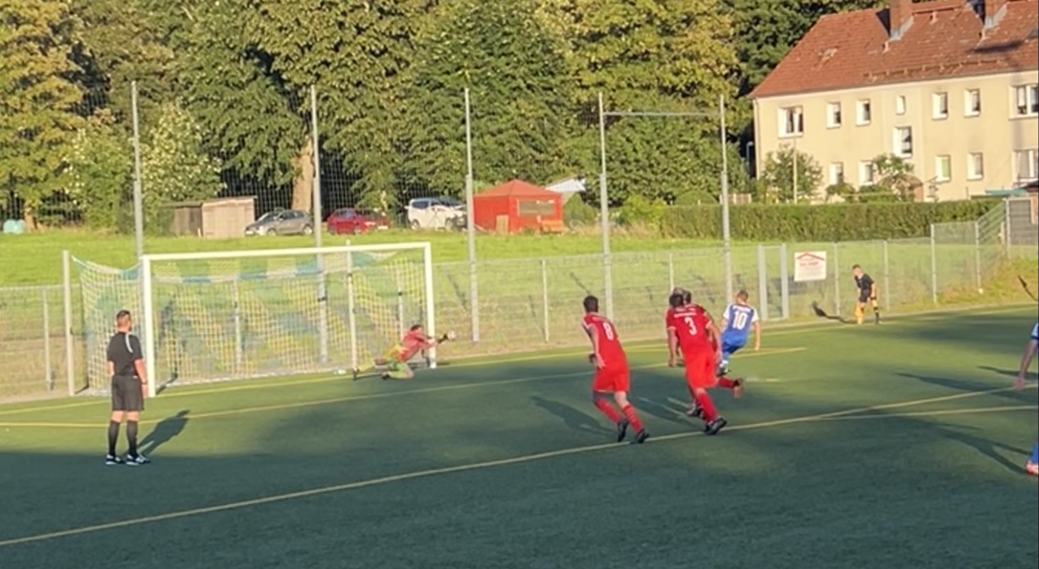 Die Situation als Marco Castaneda den Elfer von Brian Peter abwehrte.
